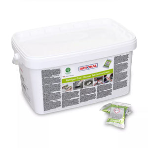 De Rational Active Green reinigingstabs (150 stuks) zijn speciaal ontworpen voor de iCombi Pro en iCombi Classic modellen vanaf mei 2020. Deze reinigingstabletten bieden een geavanceerde, fosfaat- en fosforvrije formule die tot wel 50% minder chemische stoffen gebruikt, wat bijdraagt aan een duurzamere keukenomgeving.